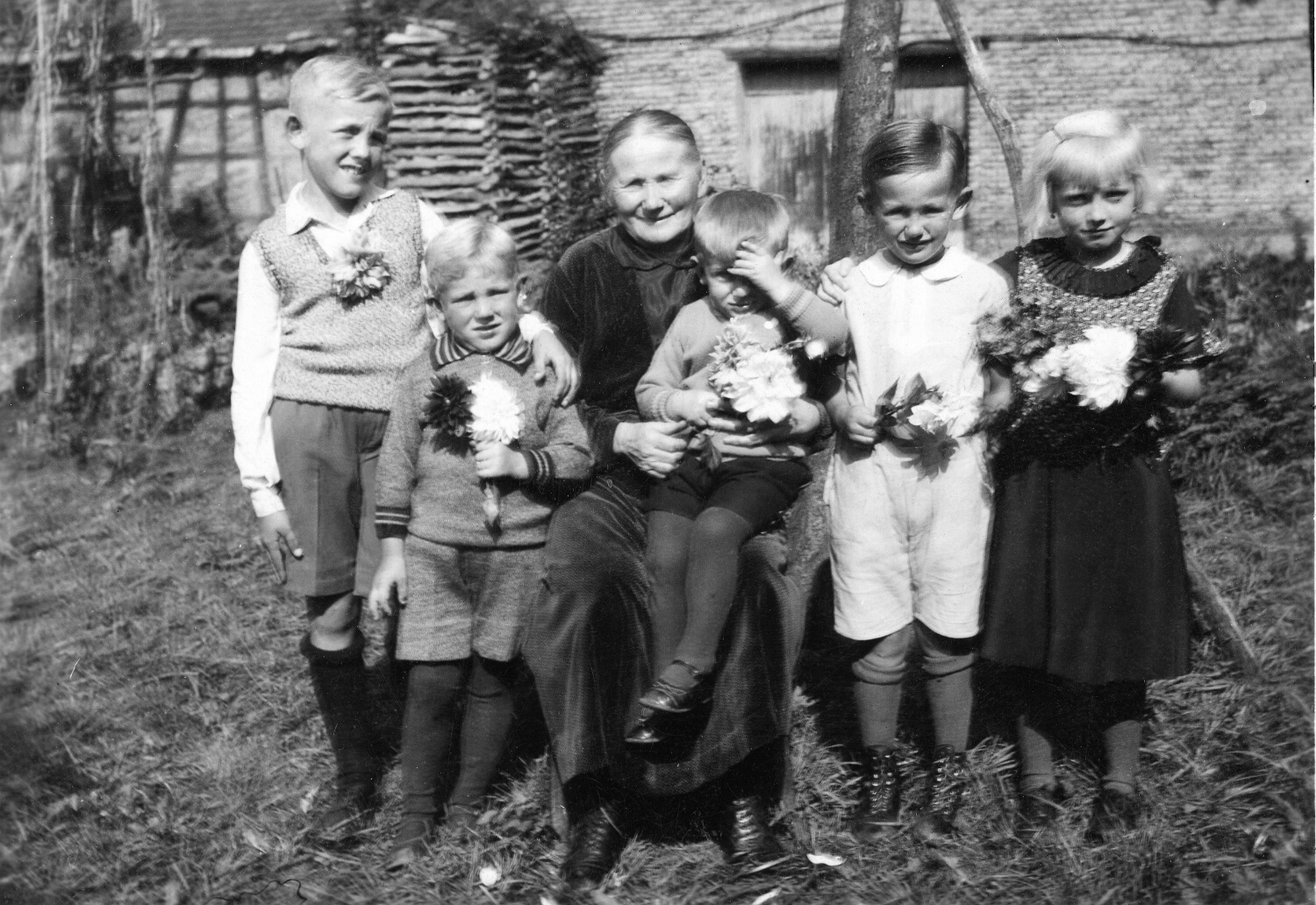 15 Fortan waren die Großeltern für die Erziehung der Kinder zuständig - der Papa musste arbeiten. Ganz rechts das dunkelhaarige Mädchen Frieda Sattler aus der Nachbarschaft.