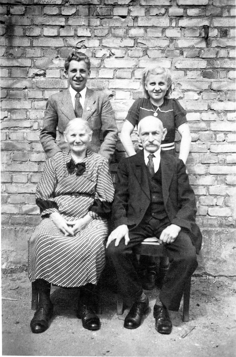 16 Als Hans aus Amerika zu Besuch war. Links der älteste Bruder von Mama - Hans, Adam, die Oma mit Joseph daneben der Cousin Hans, dann Kätha